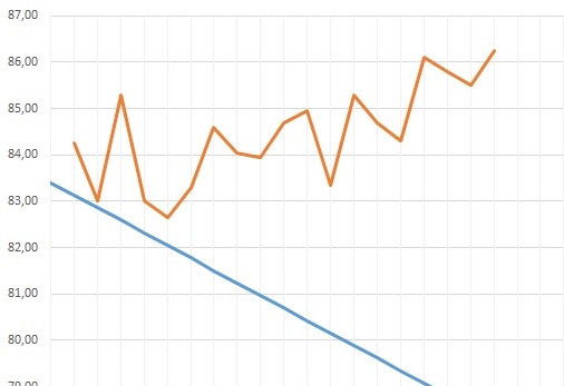 Az alábbi diagramon látható a terv és a tényleges állás.